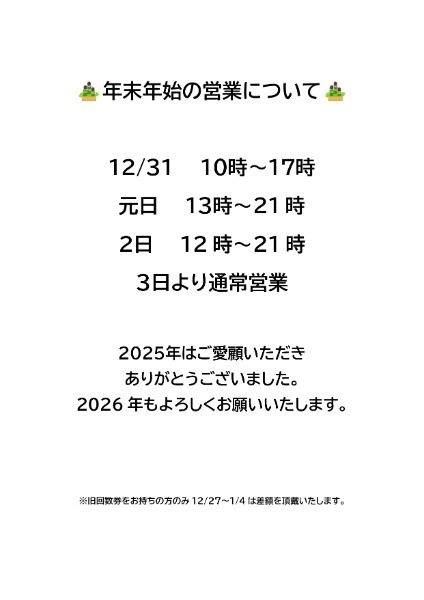 年末年始の営業について クライミングジムライズは年末年始も休まず営業いたします。 営業時間は以下の通りです。 12/31 10時~17時 元日 13時~21時 2日 12時~21時 3日より通常営業 2025年はたくさんのお客様にご来店いただきありがとうございました。 2026年もよろしくお願いいたします。 前の記事へ TOP 最新の記事です